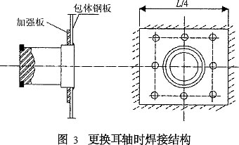 針對更換耳軸的方案,以剪應(yīng)力校核耳軸焊縫強度